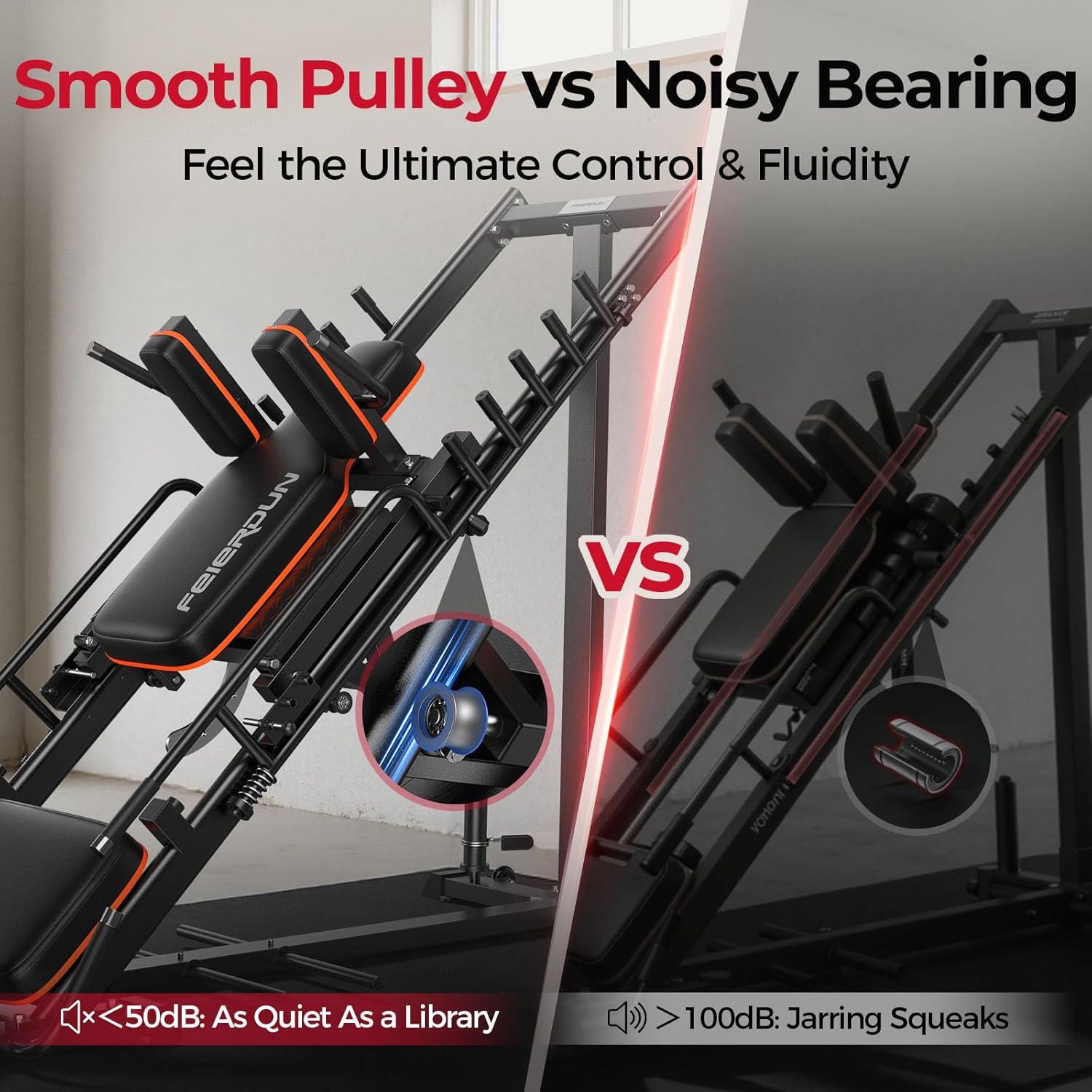 Ultra-Quiet Pulley System: Equipped with upgraded ultra-quiet pulleys (replacing traditional linear bearings) to deliver smoother, more stable sled movement. Operating at under 50 dB, it ensures a distraction-free home workout while providing a commercial-grade smooth training experience.