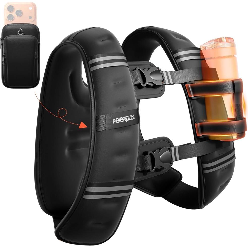 FEIERDUN 3-IN-1 Weighted Vest Kit with Phone Holder & Water Pocket, 8lb/12lb/20lb Chest-friendly Vest for Running, Walking, Workout, Fitness, Cardio, Training & Strength Building(Black-20lb-Fitness Beast)