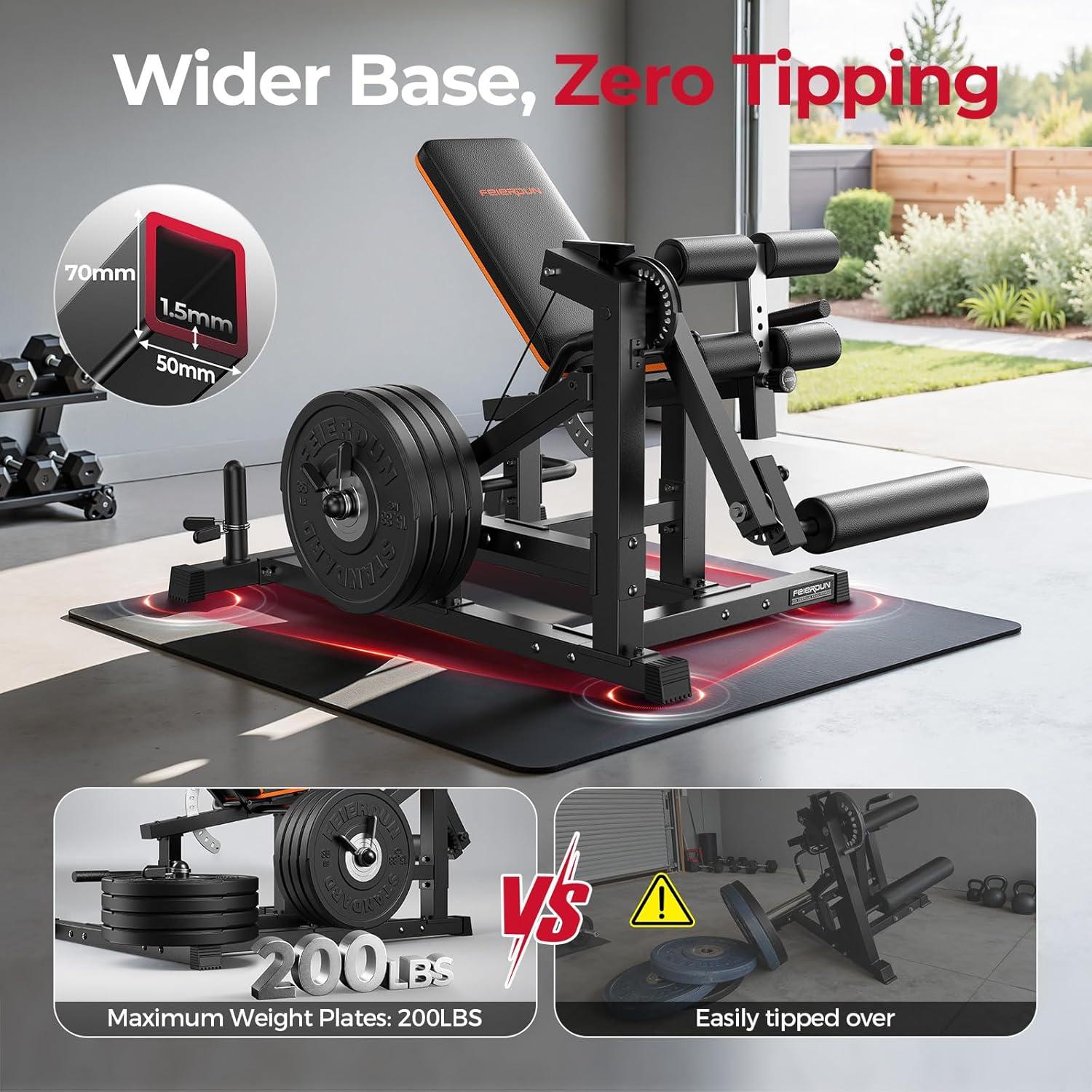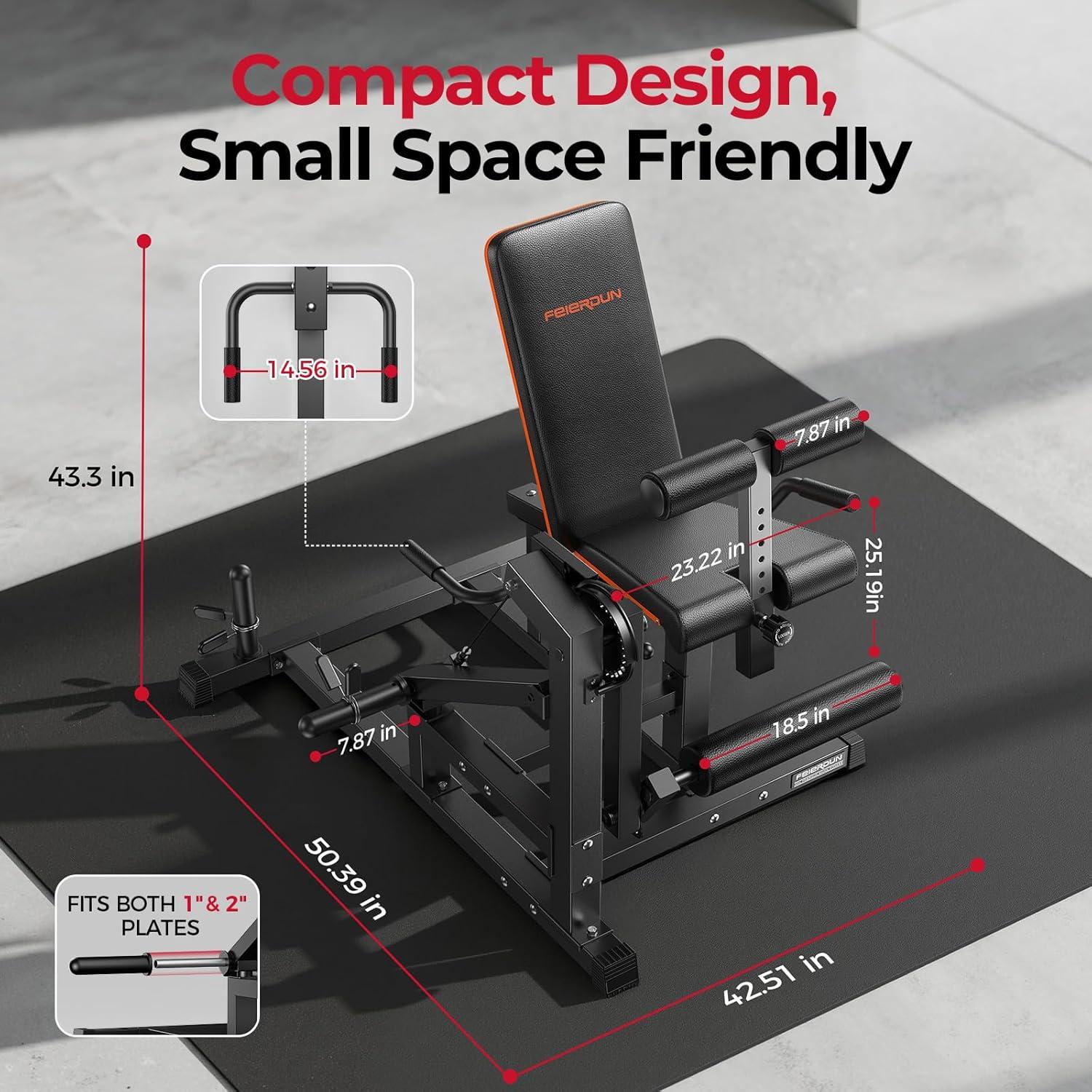 【Compact Design, Maximized Space】With dimensions of 50″ L x 42″ W x 43″ H, FEIERDUN leg extension and curl machine fits perfectly into any corner, apartment, or garage—making it an ideal choice for your home gym. The added plate storage bar not only keeps the weights organized, but also enhances stability.