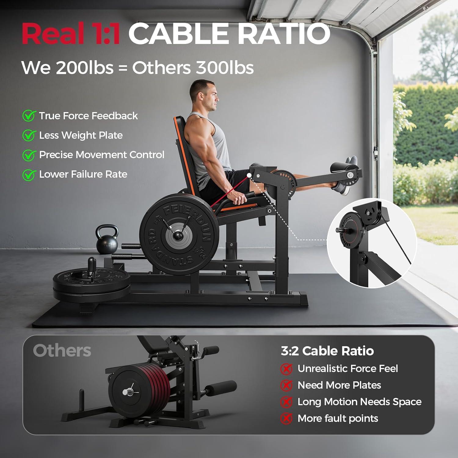 【True 1:1 Cable Ratio, Feel Every Pound You Lift】Unlike common 3:2 systems that dilute resistance, the FEIERDUN leg curl machine utilizes a true 1:1 cable transmission ratio, directly transferring 100% of your chosen weight to the muscles. This ensures precise weight tracking-perfect for multiple users and conducive to consistent, long-term strength gains.