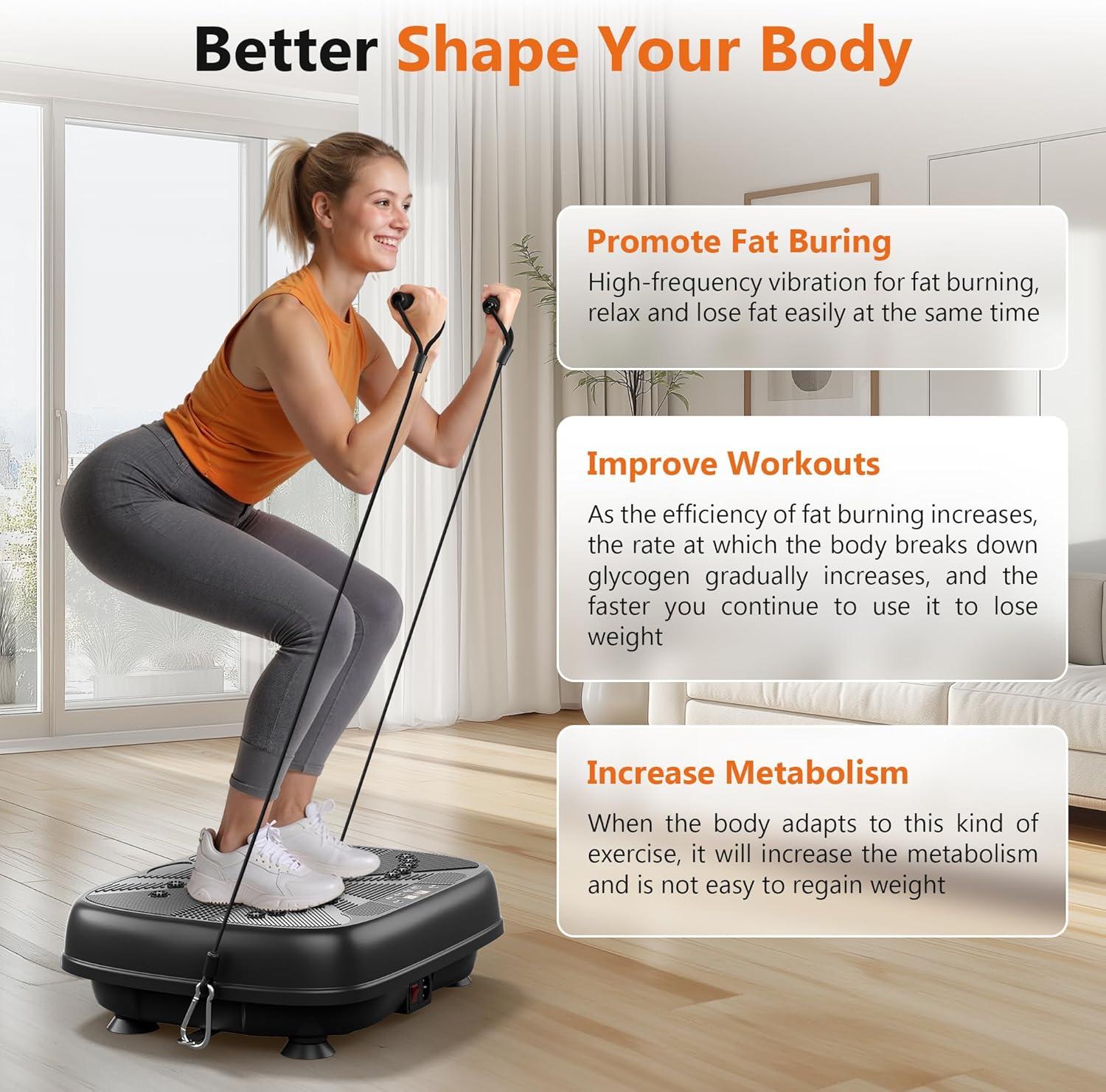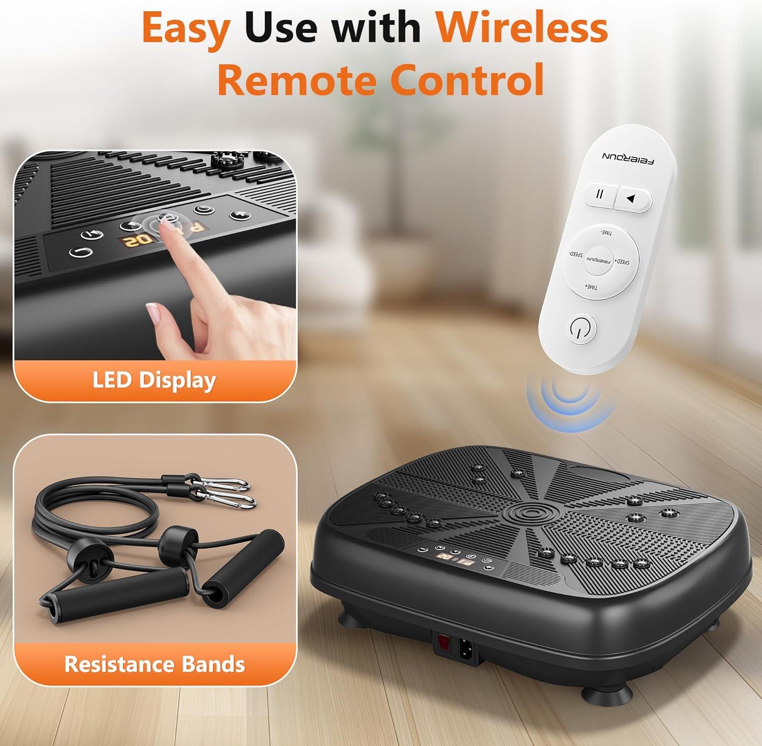 FEIERDUN Vibration Exercise Machine, Power Waver Vibration Plate Platform for Lymphatic Drainage Whole Body,with 2 Resistance Bands, 120 Levels